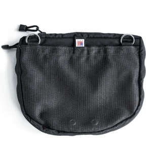 It has two 1“ stainless steel d rings that allow it to be clipped off to the Razor Harness DAP’s so that it sits just below the BAT wing.