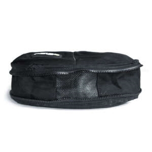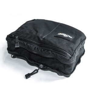 The RESMP can be expanded with a large, heavy duty top zipper all around the pouch when larger carrying capacity is required or squashed flat to be as streamlined as possible.